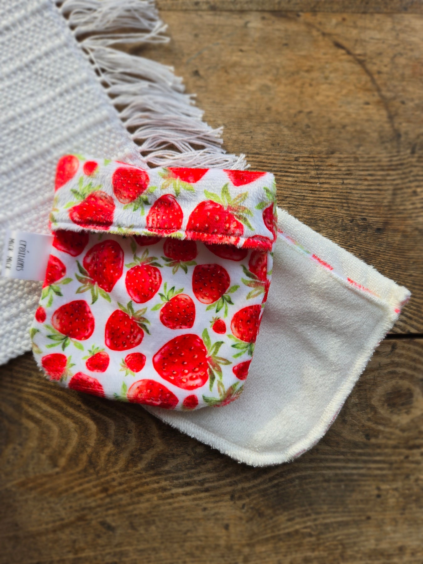 Réversible: Un côté en minky ultra doux, parfait pour le visage, les peaux sensibles et les bébés. Le revers en ratine de bambou pour faire mousser vos savons et pour un nettoyage efficace. - Fait à la main avec amour par Créations Mick-Mick! - Les tissus sont imprimés et fabriqués au Québec!
